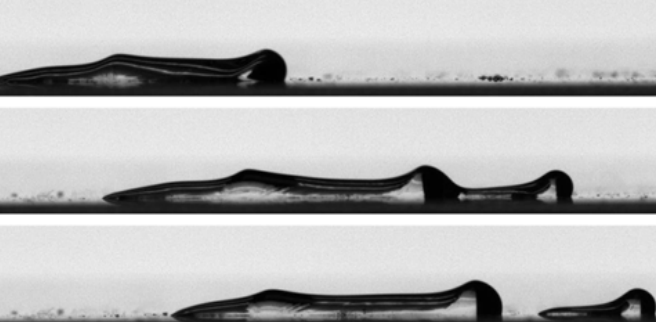 A liquid droplet pushed by the wind contracts and stretches its way along a surface until it breaks apart. Read more in APS Physics…